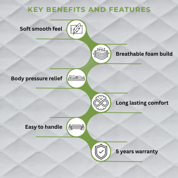 Foam Comfort from Foam Range — 5″ thickness. Comfortable, durable mattress.